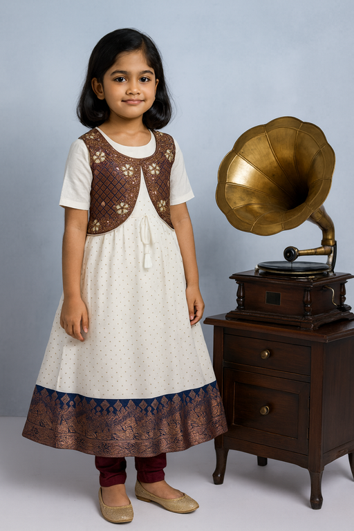 Coat Model shalwar - 3 piece set with Sleeve | White & Navy Blue