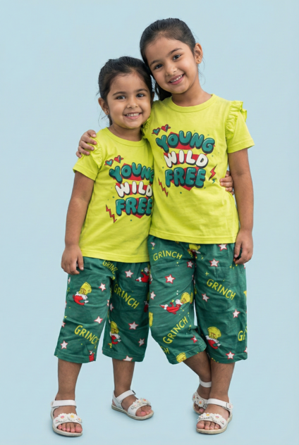 Story Kids| Girls Capri Set| Frill Sleeve | Yellow
