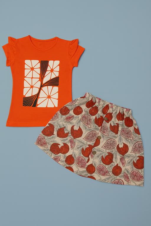 Story Kids| Girls T-shirt and Skirt set | Short Sleeve | Orange