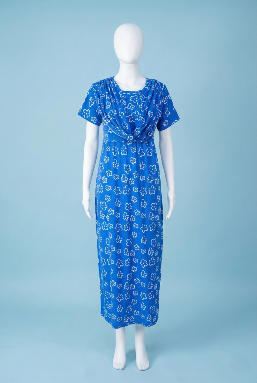 Zipless Shawl Type Feeding Maxi | Normal sleeve | Small Flower Print | Blue